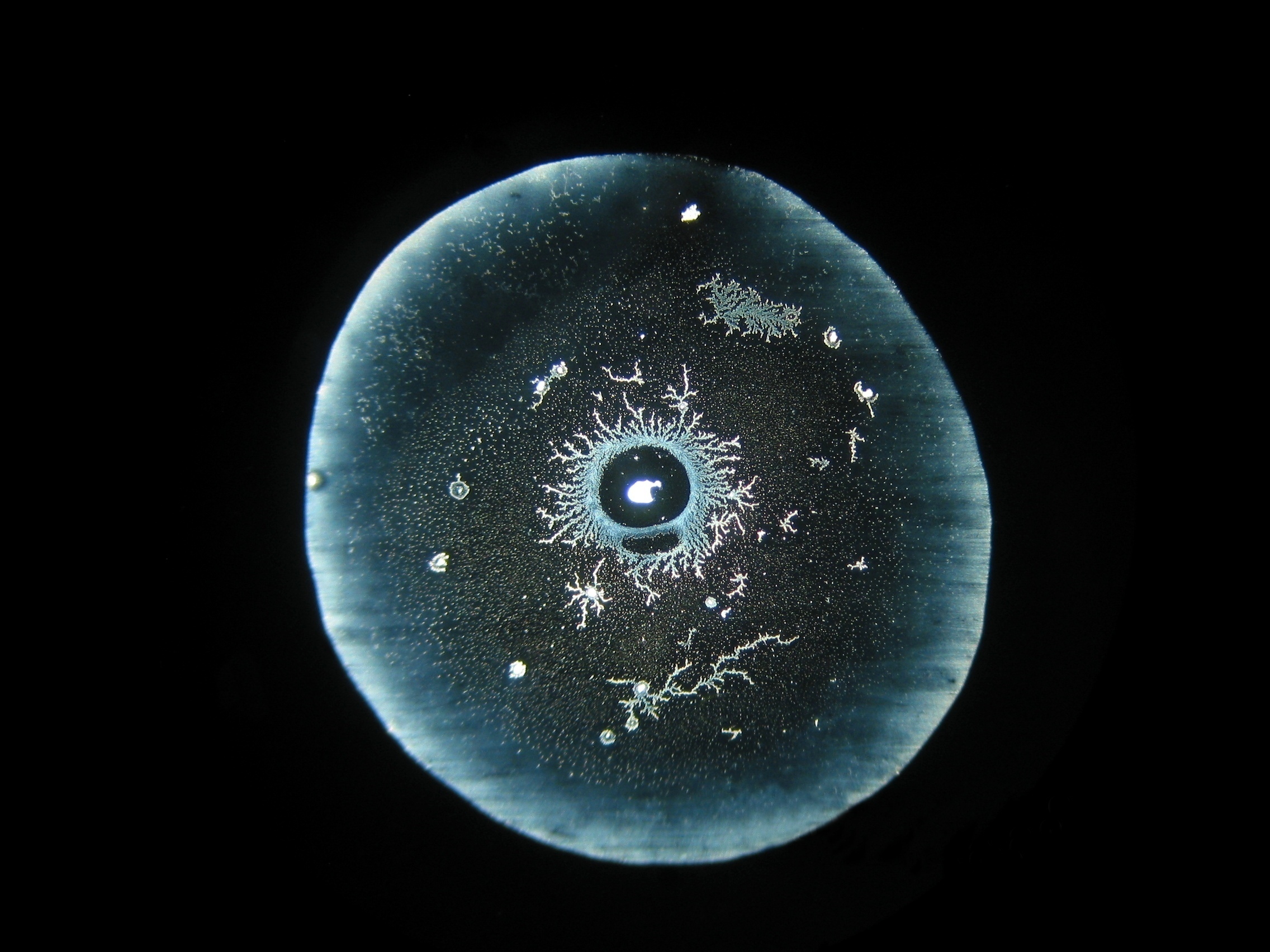- Ostanke posušenih kapljic opazujemo pod mikroskopom in jih fotografiramo.
